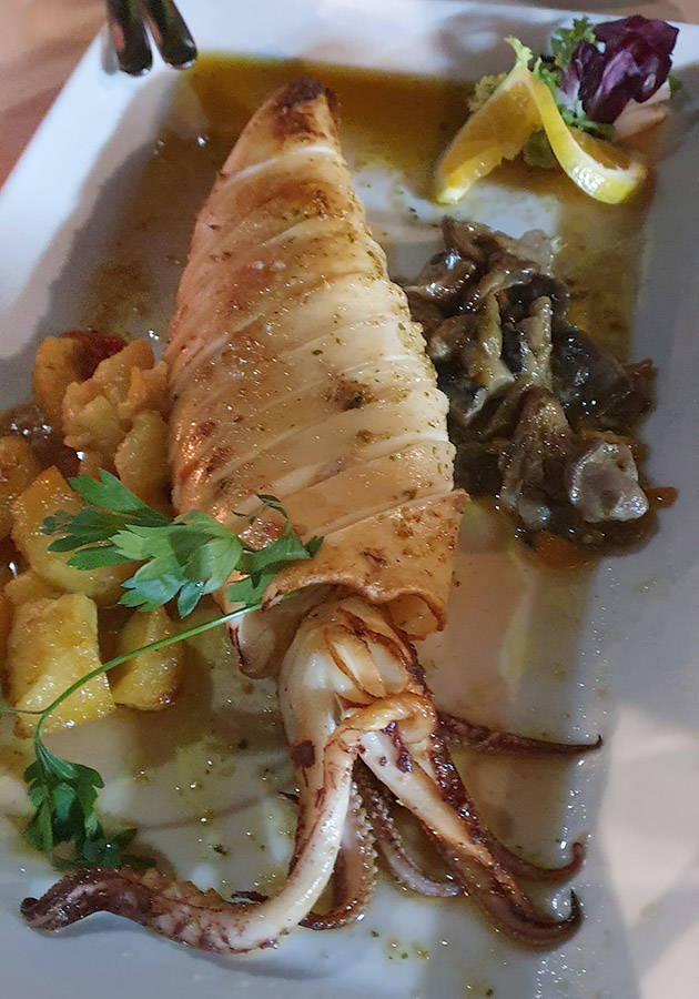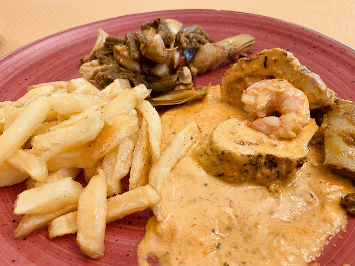 - Merluza rellena (rellena de marisco y con salsa de gambas)