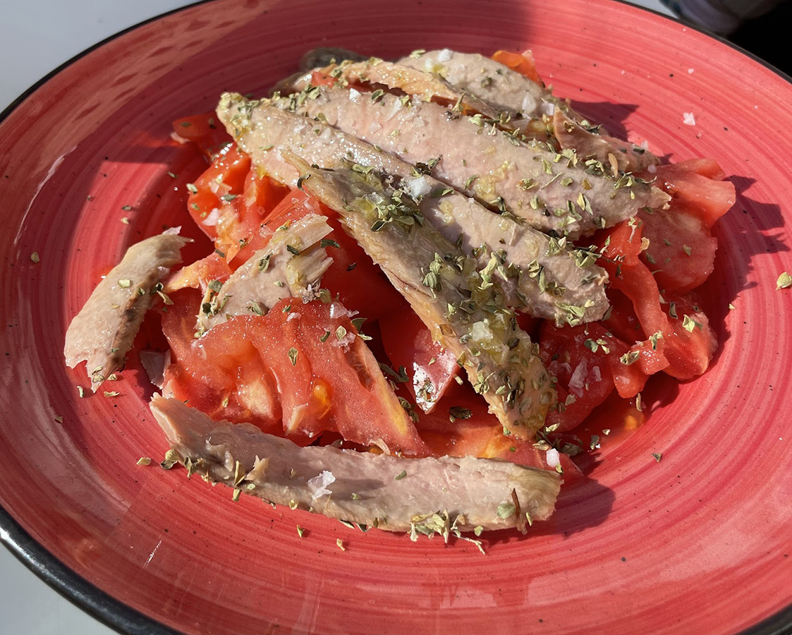 - Picadillo de tomate (ajo, atún y perejil)