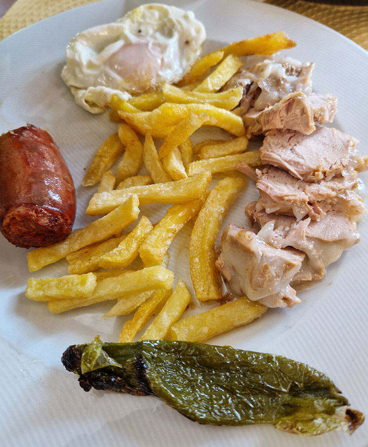 - El plato de Diego (lomo en manteca, huevos, chorizo, patatas y pimientos)