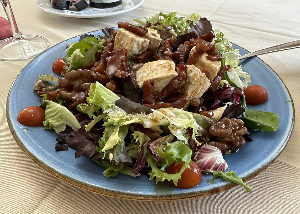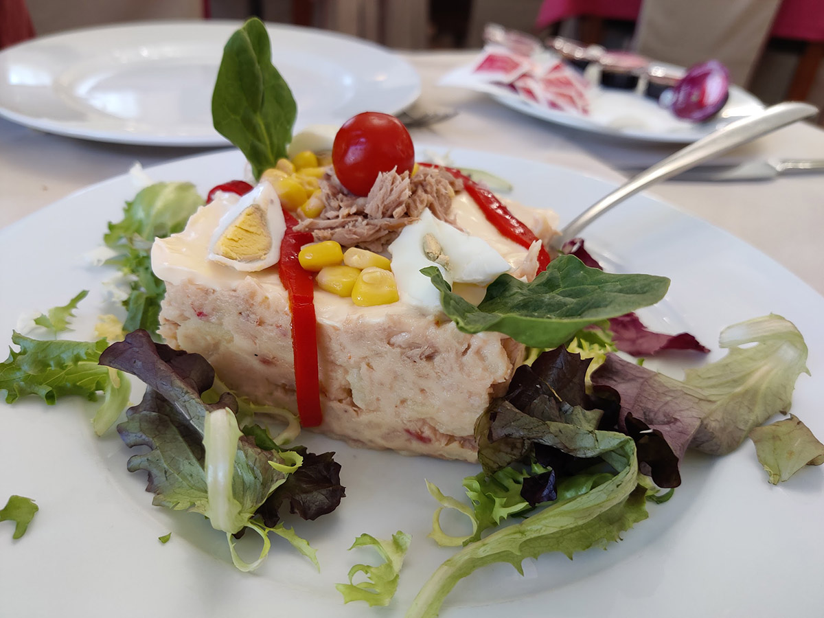 - Ensalada mixta (lechuga variada, tomate, espárragos, cebolla, huevo, atún, jamón york, queso manchego)